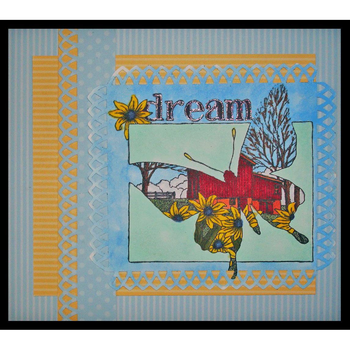 Since the ColourQ challenges are based on Stampin' Up! colors, I was happy to be able to use some of my Stampin' Up! paper. It's so yummy I hate to use it for just anything, but I had colors that matched this week's combo So Saffron, Daffodil Delight and Soft Sky. Just by chance, I had met the "basic black" criteria already by making the daisies Black-eyed Susans in a nod to my now-home State of Maryland. I added a glitter border to the "dream" sentiment to offset the black.